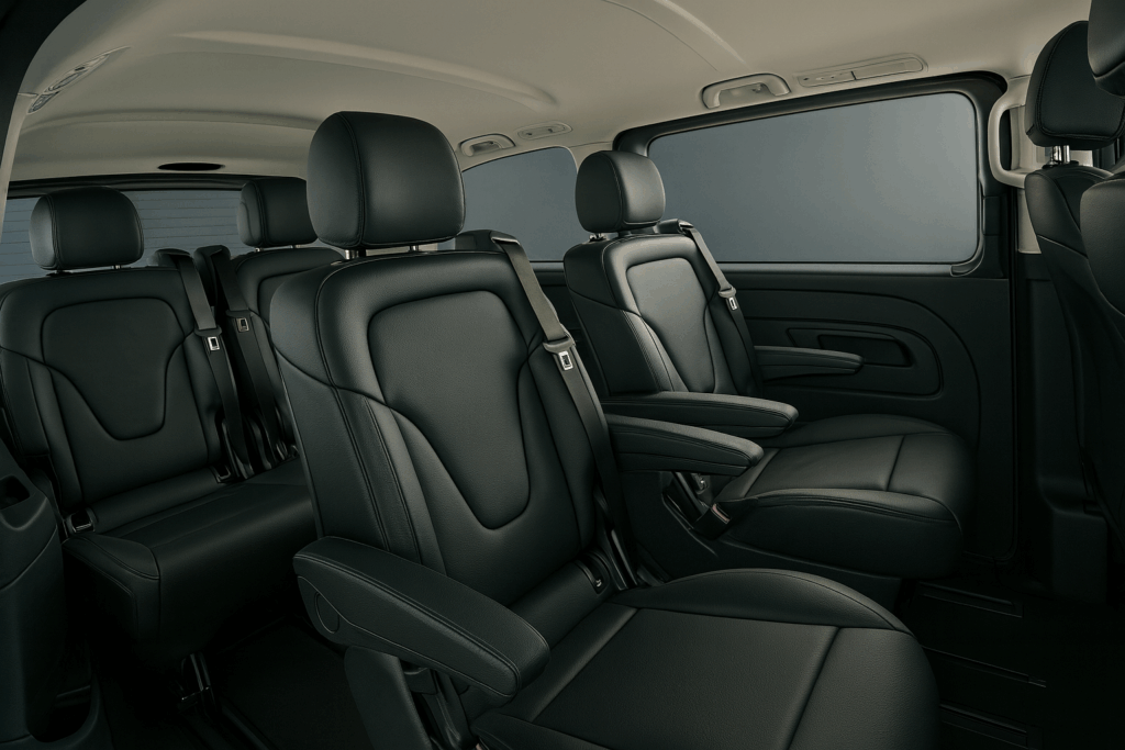 A premium minibus designed for comfortable group travel, offering exceptional space, safety, and luxury for up to 8 passengers depending on configuration. High-roof cabin, wide ergonomic seats.